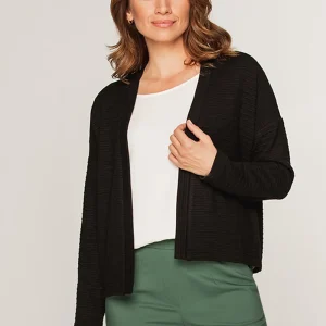 Czarny Długi Niezapinany Kardigan z Kapturem