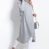 Sweterek oversize długi beżowy w ecru paski Giotto E199 beżowy || ecru | KATEGORIE SWETRY PROMOCJE | Charlotte Fashion