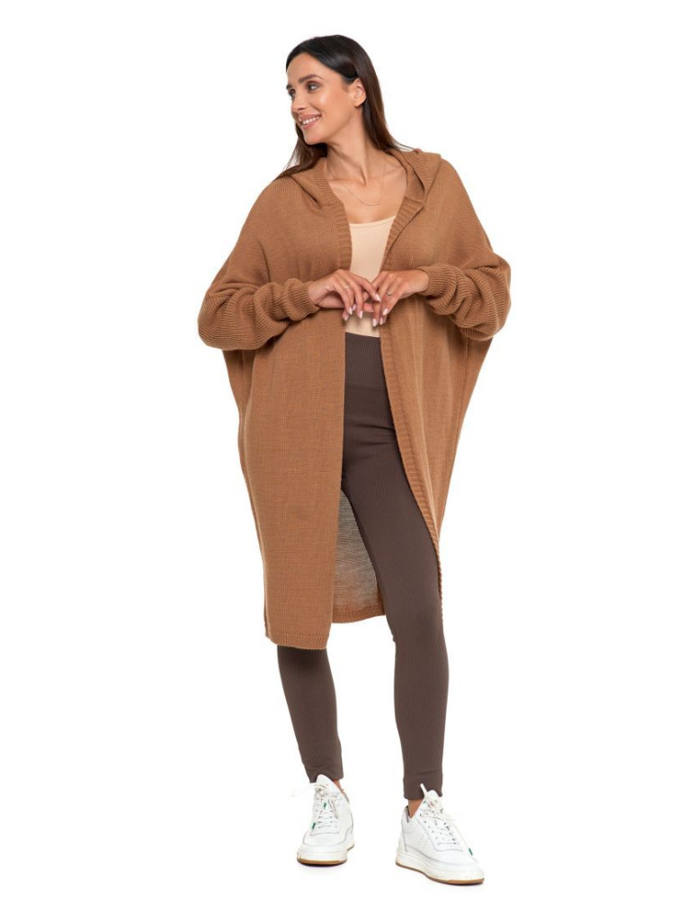 Długi sweter damski kardigan z kapturem BEŻOWY sklep Moraj