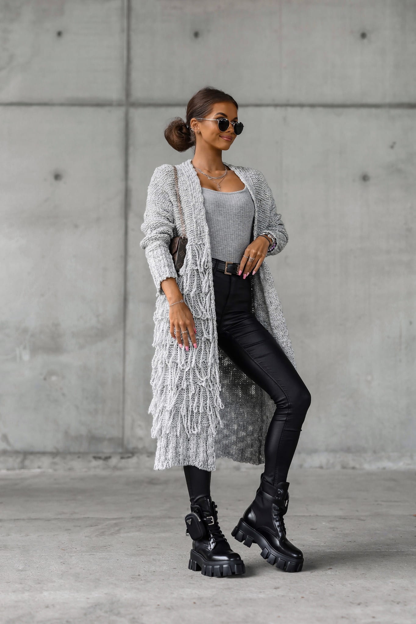 Kardigan damski z frędzlami Cocomore Marbella jasnoszary | Sklep internetowy Butik Perla