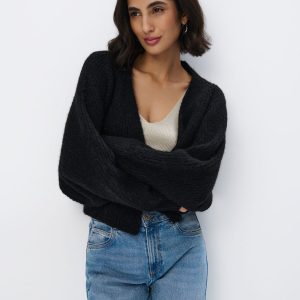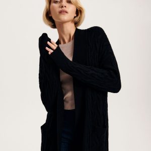 Kardigan z kapturem i kieszeniami czarny Tmc Moda