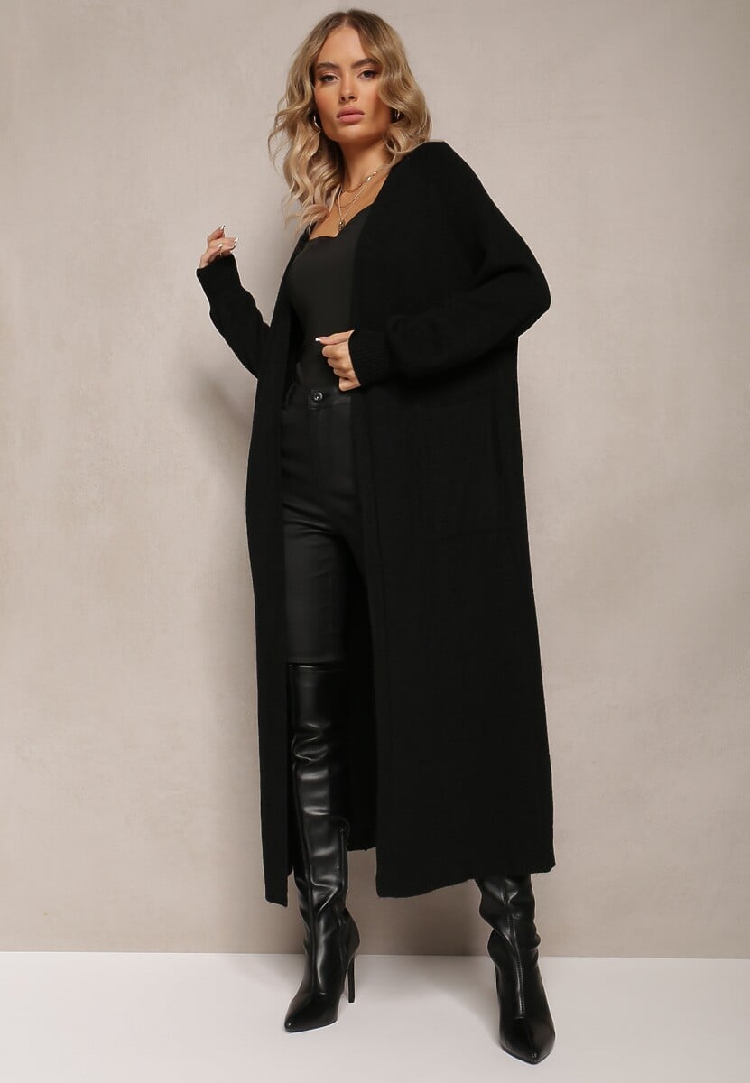 Czarny Długi Kardigan Niezapinany z Kieszeniami Richildi Renee