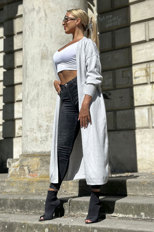 Kardigan MILA długi sweter damski SZARY Monita Stile