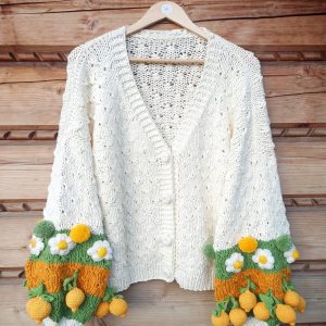 Kolorowy sweter z szerokimi rękawami CHERRY LADY (KREMOWY Z ZIELENIĄ) Gasienicowa