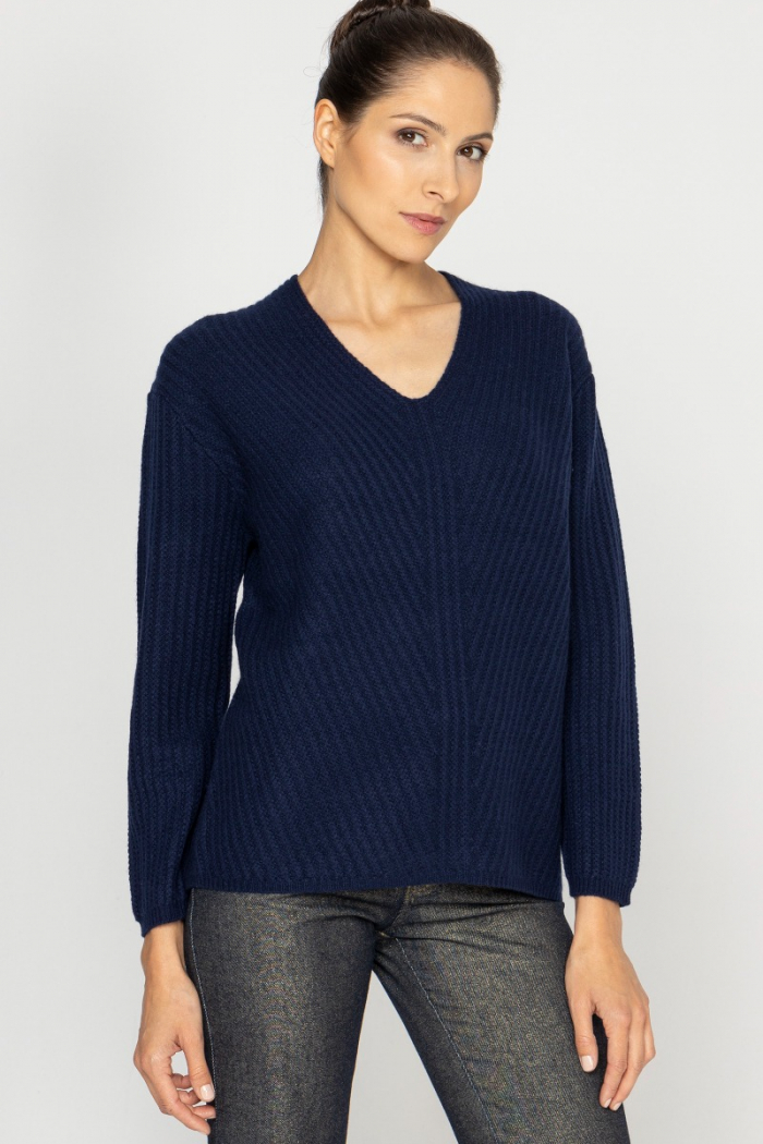 Granatowy sweter z kaszmiru z dekoltem V