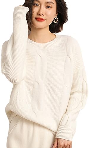 HEYDHSDC 100% kaszmirowy sweter damski okrągły dekolt pogrubione swetry luźny sweter, biały, 3XL : Amazon.pl: Moda