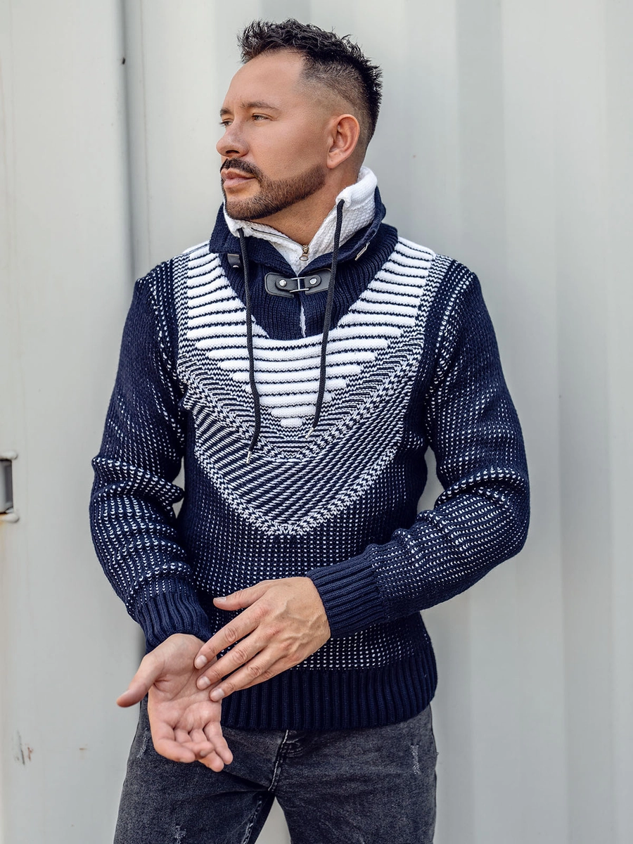 Granatowy gruby sweter męski ze stójką Denley 2027