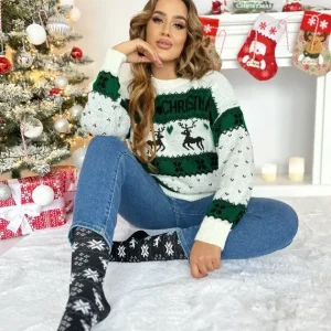 Sweter Świąteczny Merry Christmas Butelkowa Zieleń