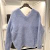Mikos Luźny Sweter damski w serek z dużym dekoltem w kształcie litery V 617 niebieski