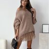 Mikos Luźny Sweter damski w serek z dużym dekoltem w kształcie litery V 617 neon różowy