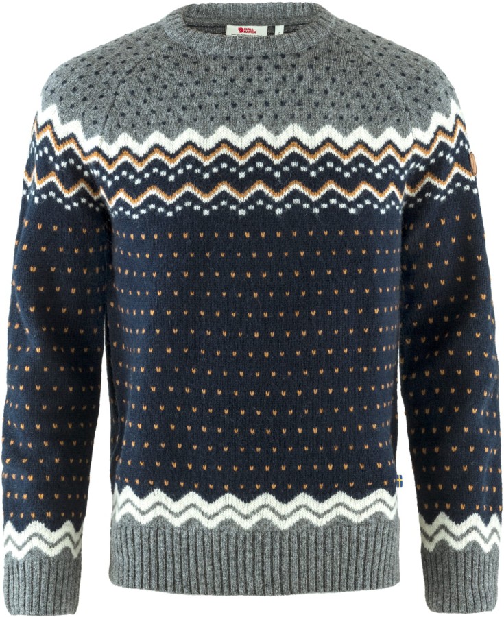 Fjällräven – wełniany sweter męski z klasycznym wzorem i łatami na łokciach