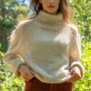 BEZSZWOWY OVERSIZOWY SWETER Z WEŁNY ALPAKI Z GOLFEM I WYWIJANYMI MANKIETAMI F1750 szary