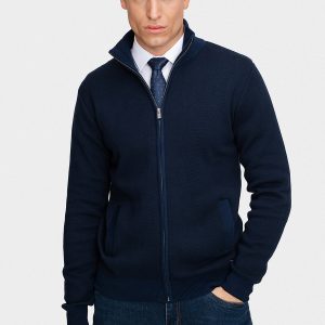 Sweter męski dzianinowy z rozpinaną stójką kremowy V1 OM SWZS 0105 Sklep Ombre