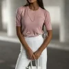 SWETEREK CHICAGO Z KRÓTKIM RĘKAWEM BŁĘKITNY Sklep z odzieżą damską CandyTM