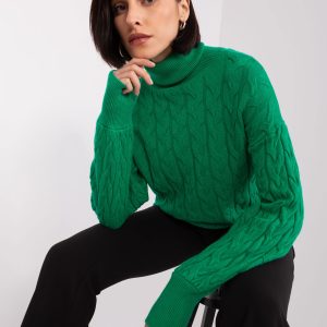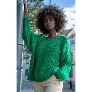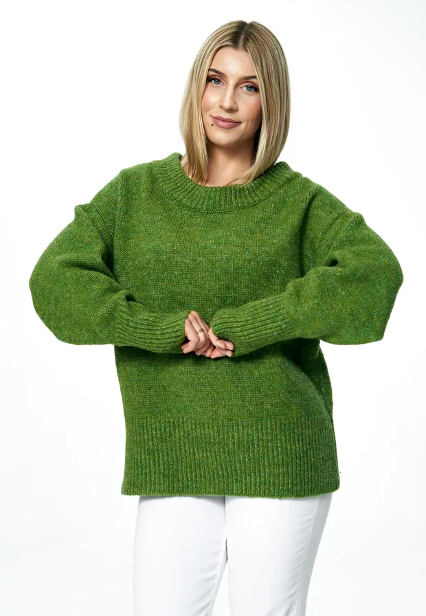 Sweter damski oversize z dekoltem w łódkę zielony M882 rozmiar Uniwersalny