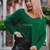 Zielony sweter dekolt V damski SWEDT 0162 54(Z24) | OCHNIK
